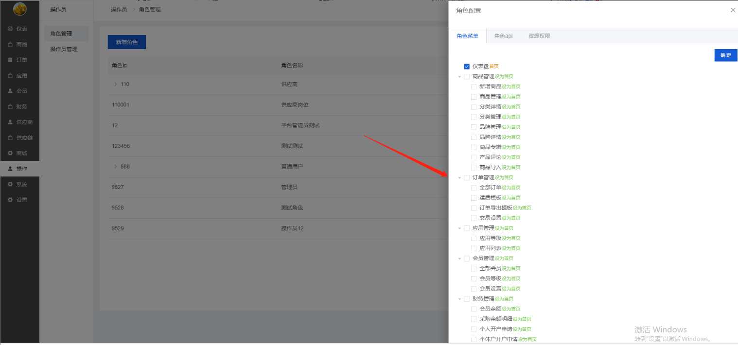 勾选想要给这个角色的权限