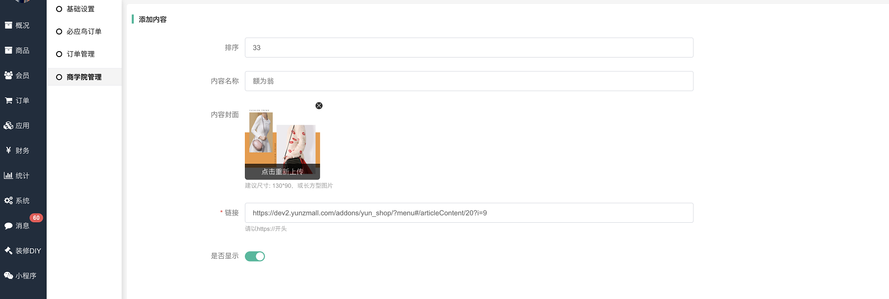 APP商学院栏目内容设置;