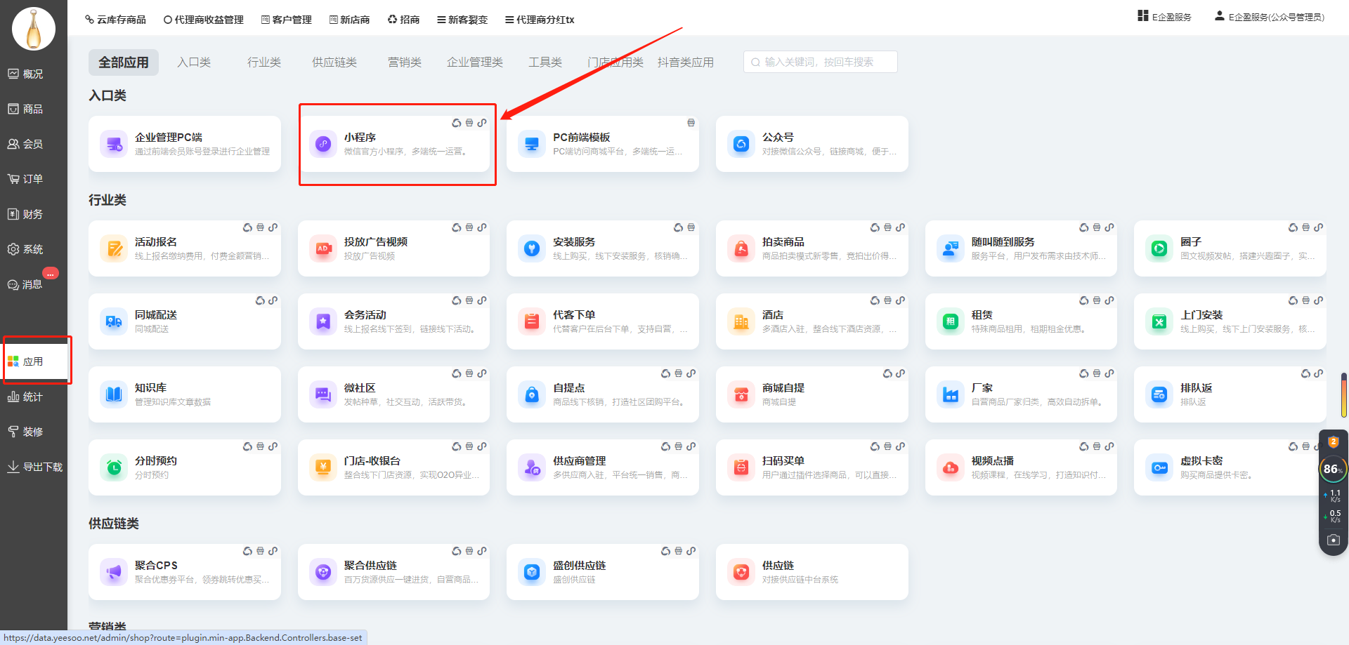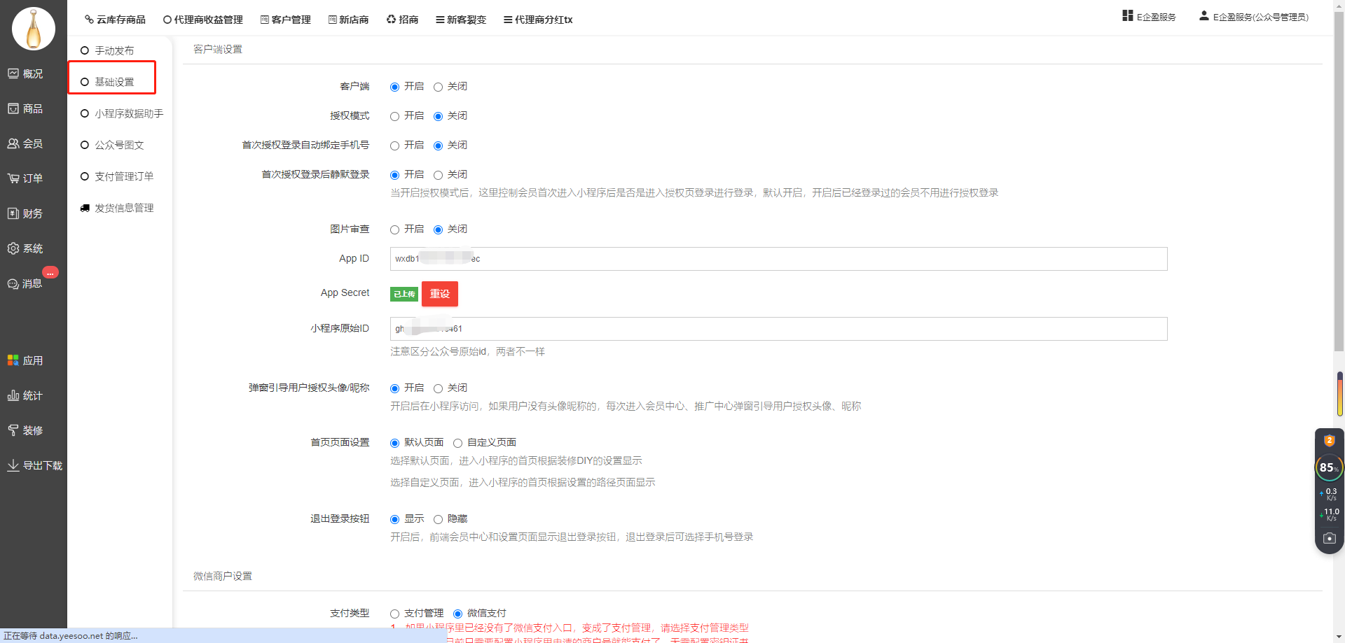 一、通过应用中心--小程序--进入小程序基本配置页面